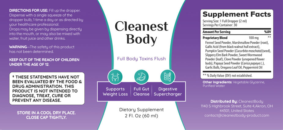 Cleanest Body is backed by a 60-day money-back guarantee.