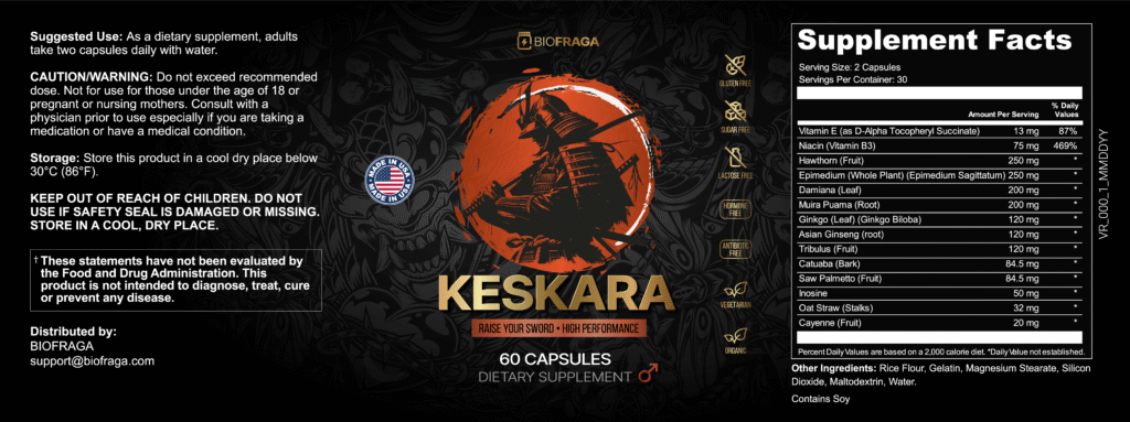 Keskara is an organic male sexual enhancement supplement crafted to support testosterone production, boost libido, increase stamina, promote harder erections, and improve reproductive health. Created by Biofraga—a smaller, lesser-known company—it is formulated using natural botanicals and vitamins traditionally linked to better male vitality and hormonal wellness.