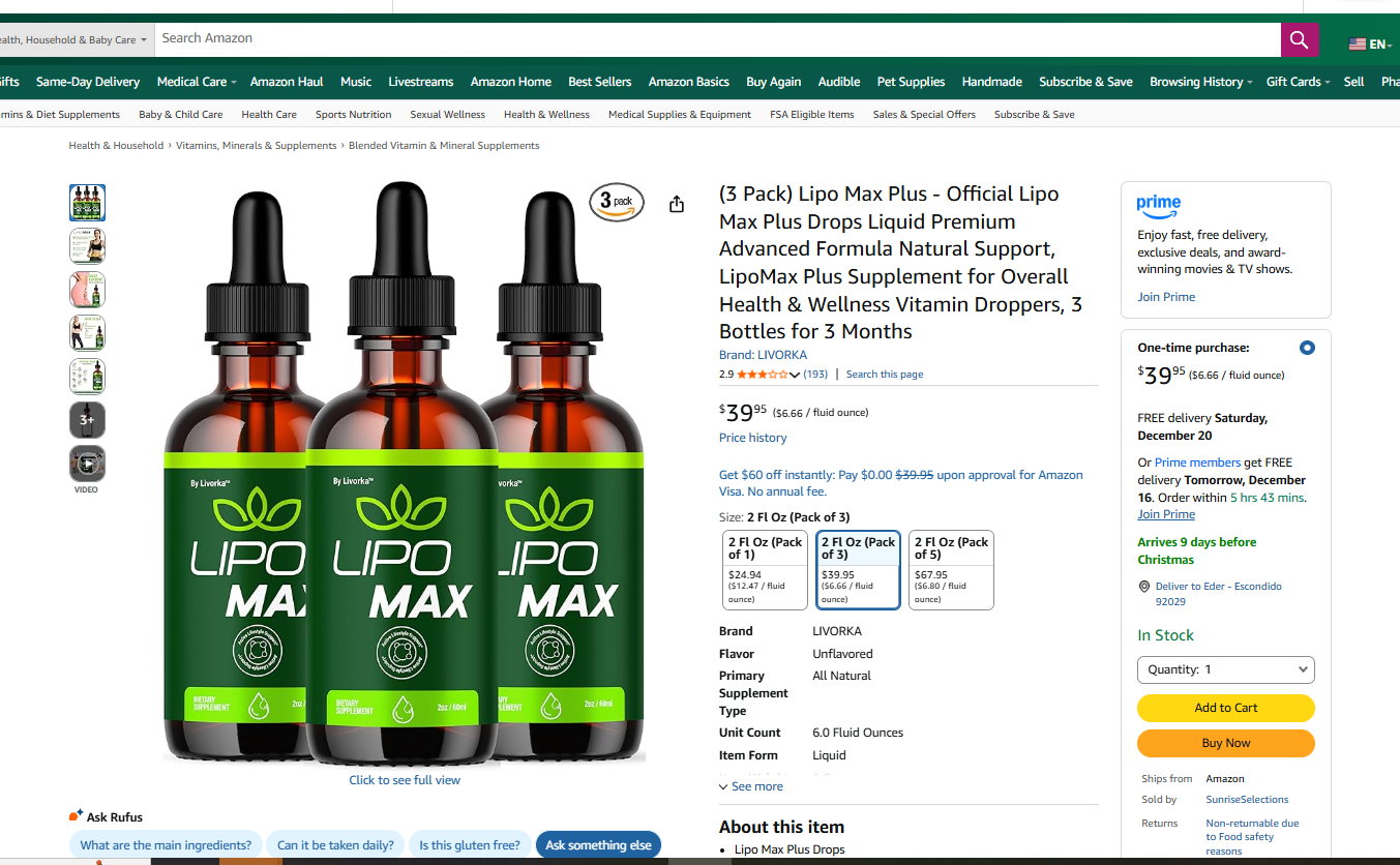 I bought LipoMax Drops after seeing several social media reviews claiming quick results. I was curious but also skeptical. The convenience of just placing drops under my tongue twice a day seemed appealing — especially since I was tired of swallowing pills and mixing powders.