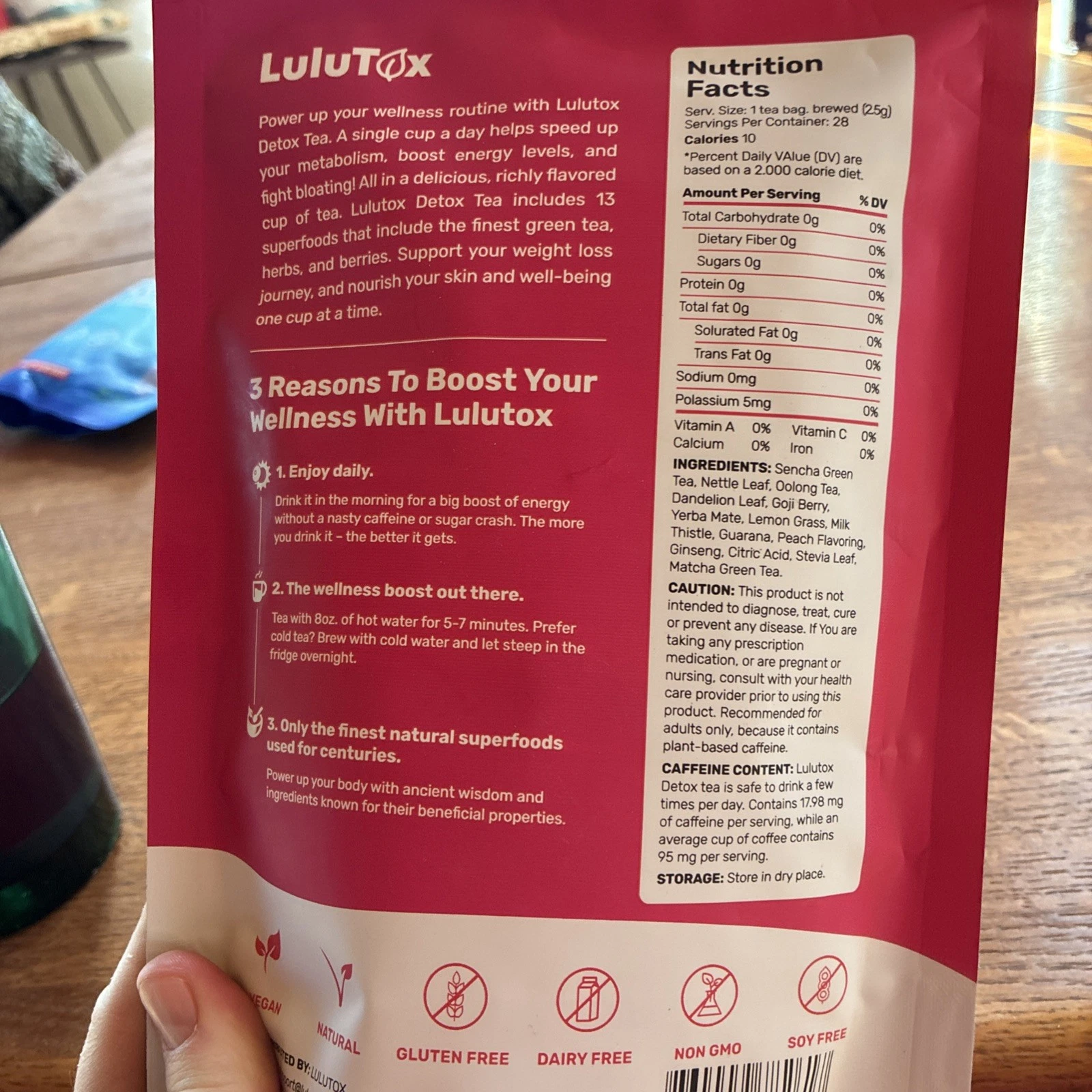 From my perspective, what makes Lulutox Detox Tea stand out is that it combines several different functional categories into one formula. It includes green tea varieties for antioxidant and metabolism support, herbal ingredients often associated with cleansing and digestive comfort, and energizing plant compounds that can help with alertness and daily motivation. The brand also emphasizes that the tea is vegan, gluten-free, dairy-free, soy-free, and made with natural ingredients, which makes it appealing to people who are trying to clean up their daily wellness habits without overcomplicating things.