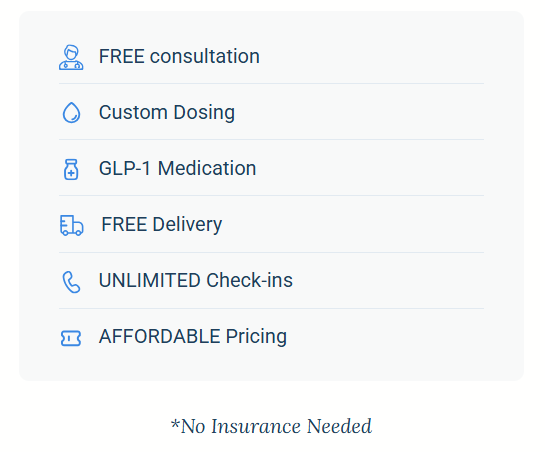 | Semaglutide | $179/month | $209/month | $191/month | $174/month | Four weekly shots per month, dosage adjustments, doctor consultations, home injection supplies, and shipping |